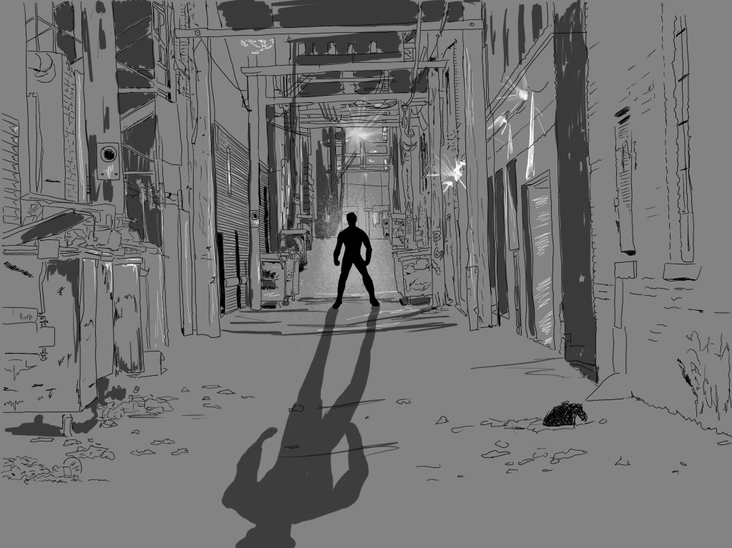 There was a man at the end of the alley, silhouetted against a streetlight.